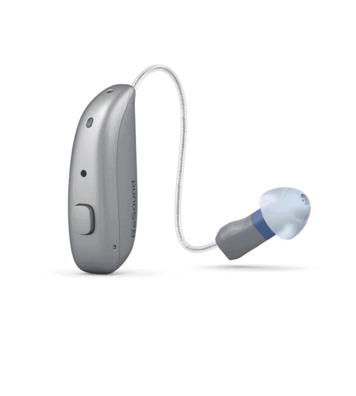 microRIE 60: Rechargeable hearing aid with Lithium-ion all-day battery, tap control, push button, streams calls from mobiles, connects to Resound’s wireless accessories (like the TV-Streamer+), and can be charged with the premium, standard, and desktop chargers.